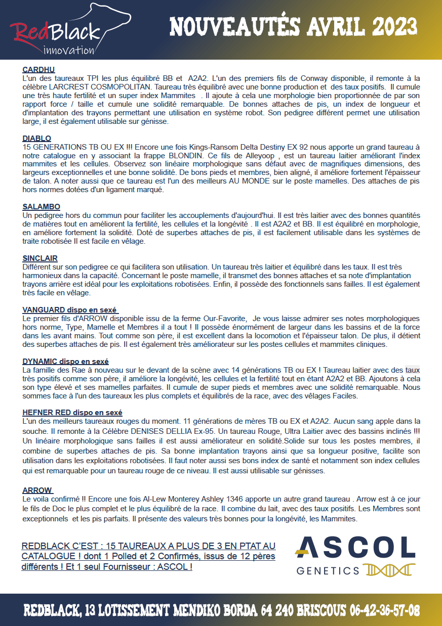 Red Black Innovation : Insémination animale - taureaux - semences Holstein - réservation en ligne