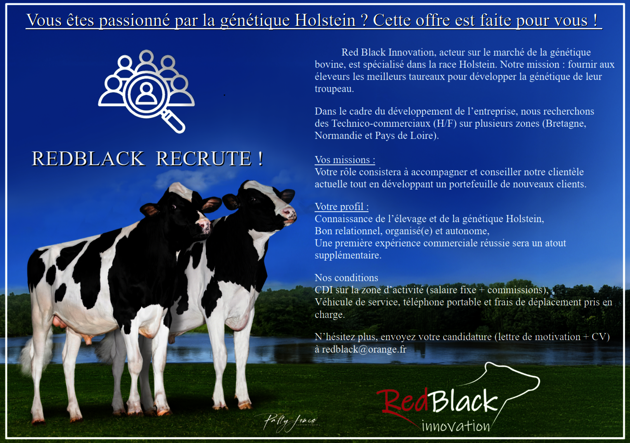 N’hésitez plus, envoyez votre candidature (lettre de motivation + CV) à redblack@orange.fr